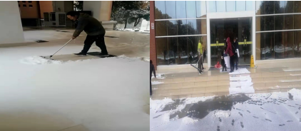 为确保业主、旅客、病患等服务区内行人的安全,安来物业不论是高校、医院还是机场项目,从下雪那一刻开始,就有条不紊的安排广大员工,认真积极的投入到这场除雪、扫雪工作中。天气虽然寒冷,工作现场确是热火朝天,大家拿着各种工具,不畏严寒,迅速投入到除雪、扫雪工作中,争分夺秒,相帮相助,为所辖区域的过往行道(车道)、楼宇过道、台阶楼梯开辟出一条条“便民路”,方便了大家安全出行。